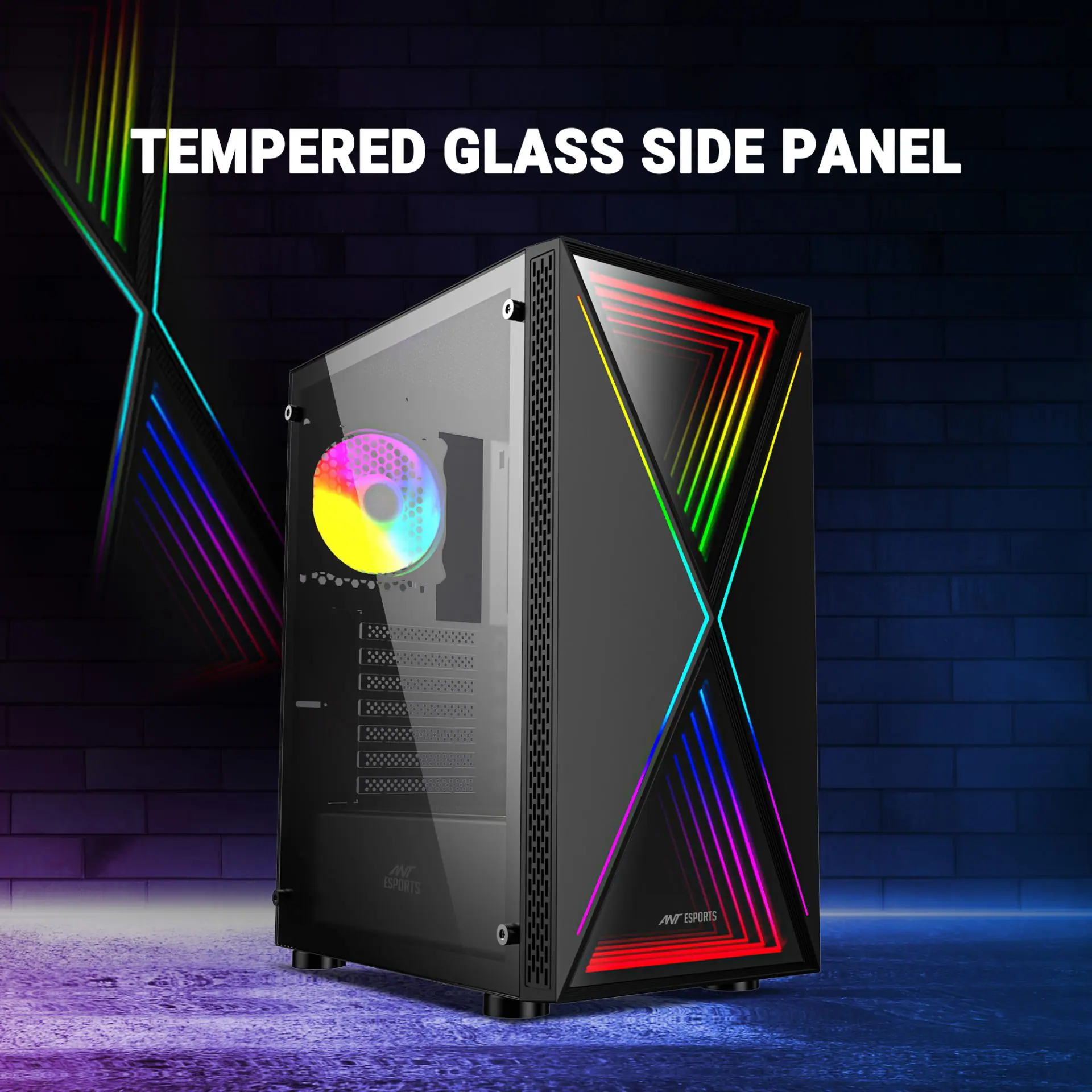 Ant Esports Infinity X Mid- Tower Computer Case/Gaming Cabinet – Black | Support ATX, M-ATX, ITX | Pre-Installed 1 x 120 mm ARGB Rear Fan