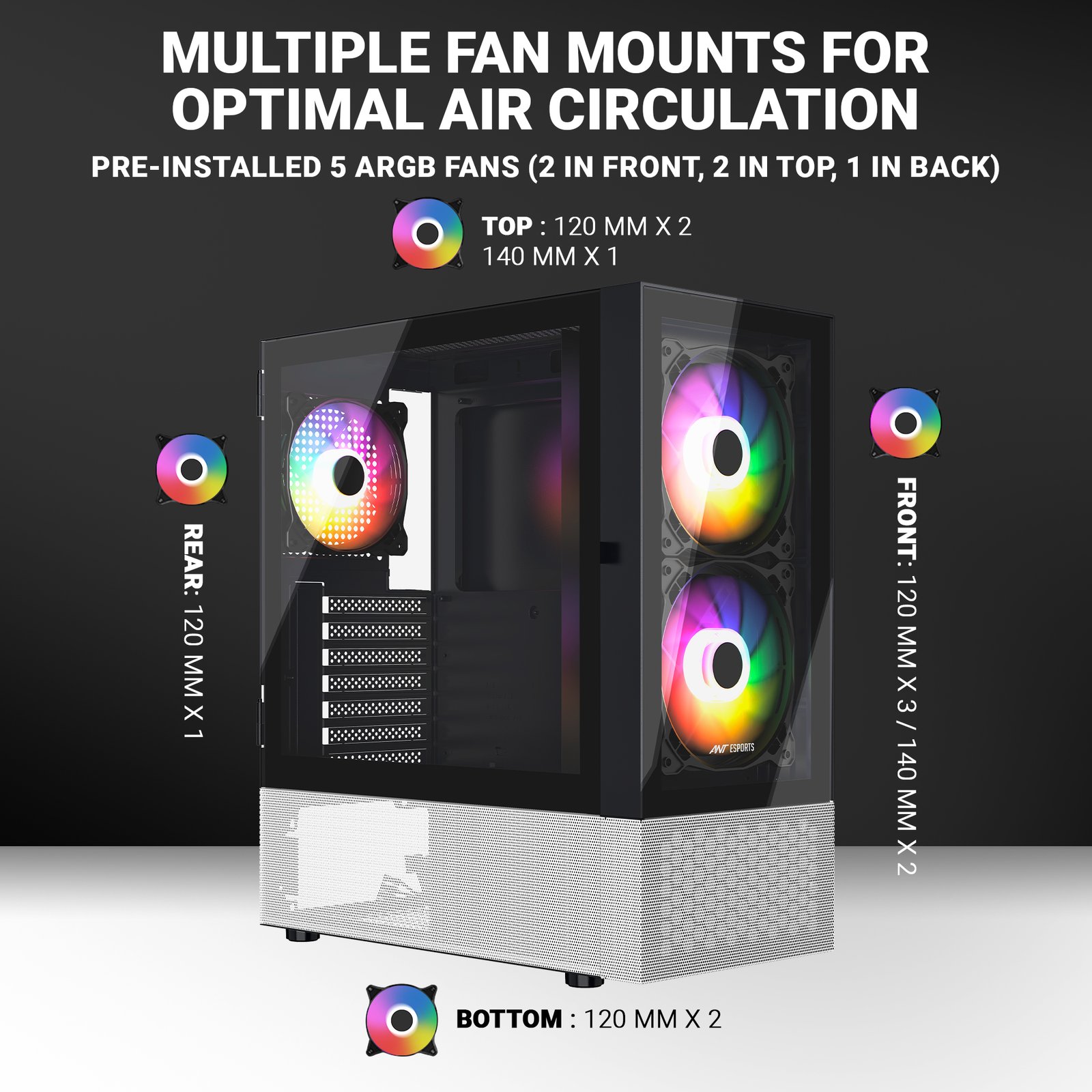 Ant Esports Pepper 5F Mid-Tower Computer Case Gaming Cabinet – Black