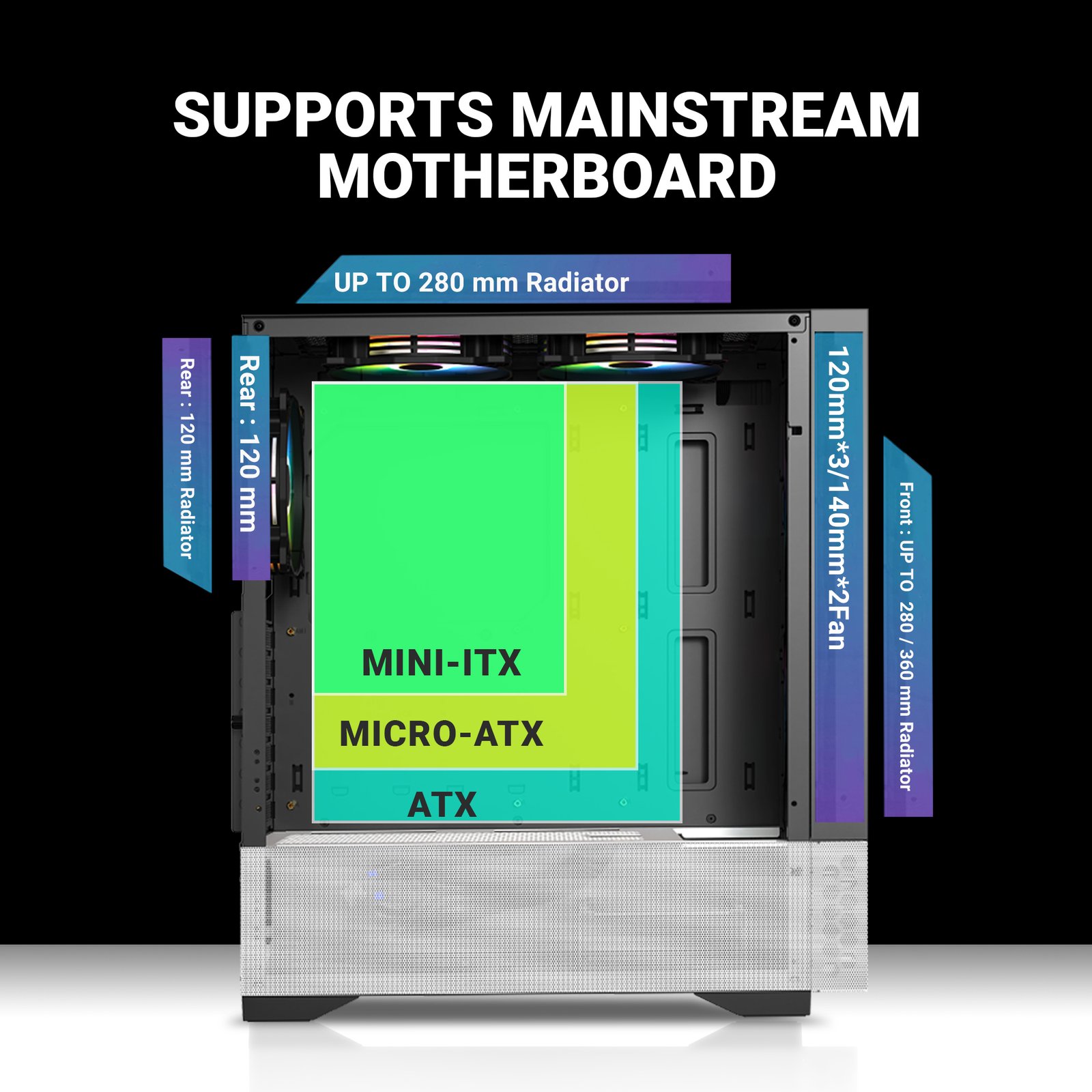 Motherboard Compatibility ATX, Micro ATX, Mini ITX