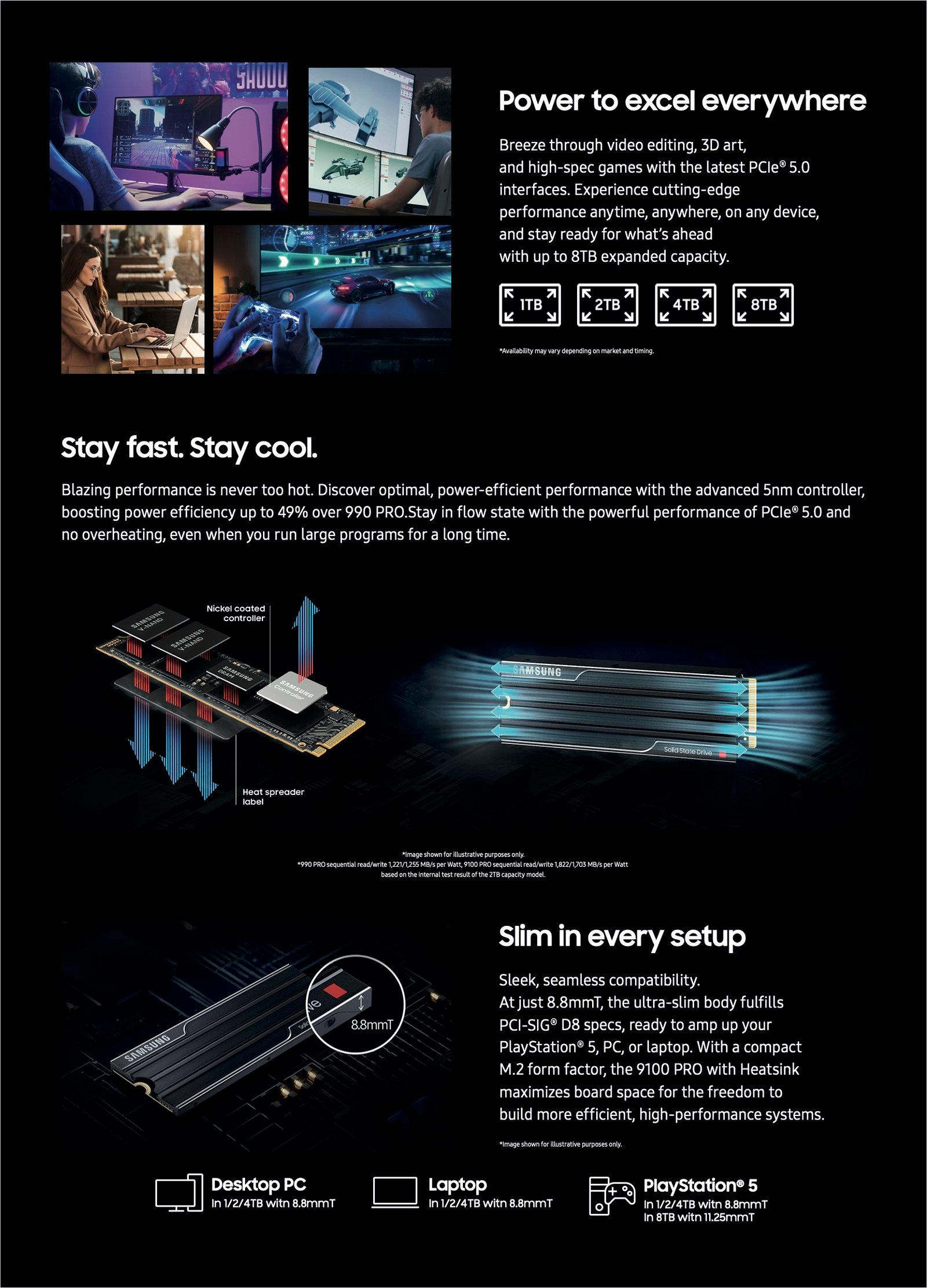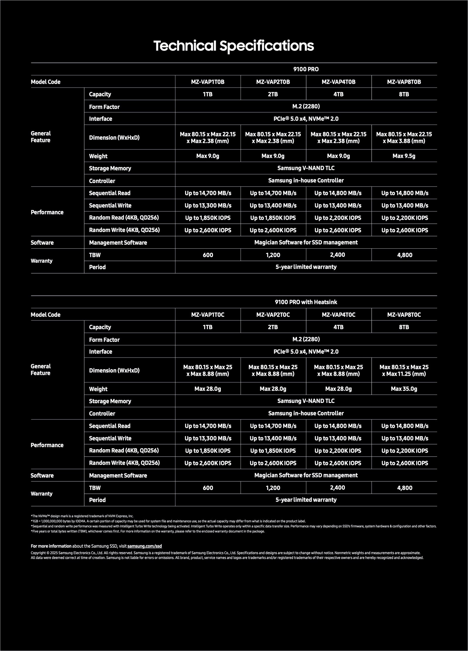 Samsung SSD 9100 PRO 2TB, PCIe 5.0×4 M.2 2280, Seq. Read Speeds Up to 14,800MB/s, Best for AI Computing, Gaming, and Heavy Duty Workstations (MZ VAP2T0B)